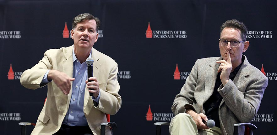 On Thursday, April 3 the Liza and Jack Lewis Center of the Americas welcomed Dr. Paul Lewis, chair of the UIW department of Philosophy, and Mr. Anthony Bradley, vice president for Emerging Technologies and Trends Research at Gartner, to engage in a dual presentation titled “Artificial Intelligence: What It Does for Us; What It Does to Us.” The presentation welcomed members of the community to listen and engage as they explored how emerging technology disruptions are creating new threats and opportunities in health, science, business and education.